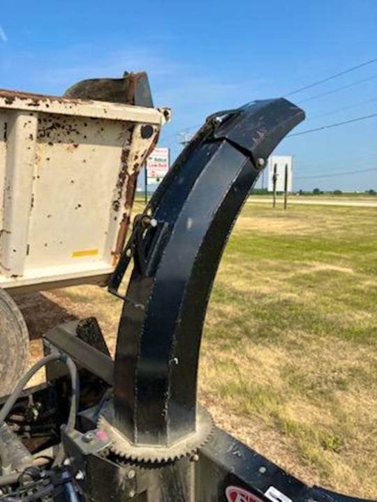 - Truck loading chute places snow high in a truck box